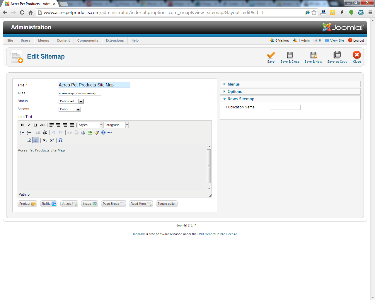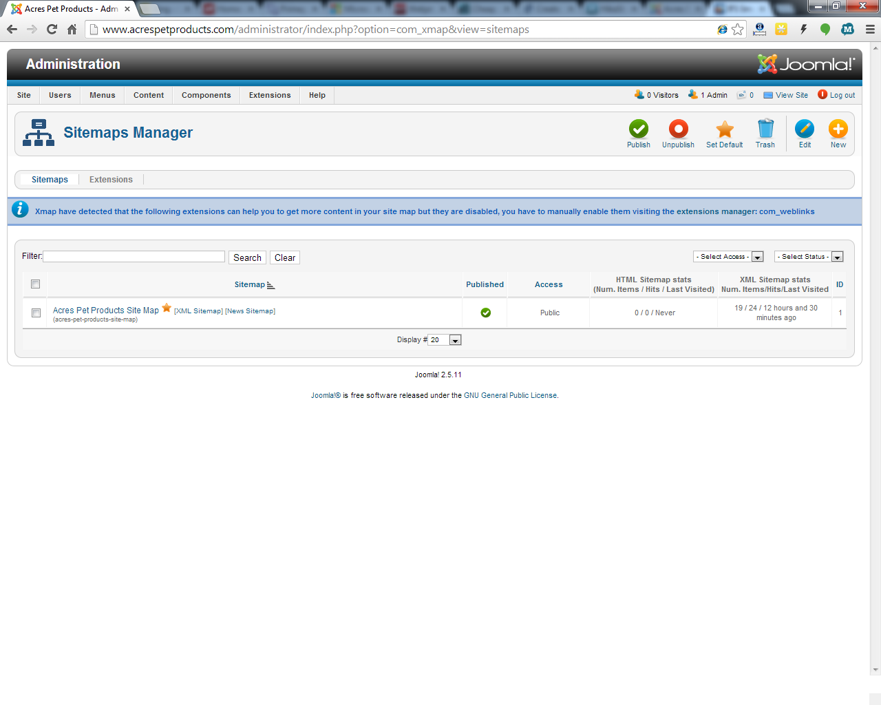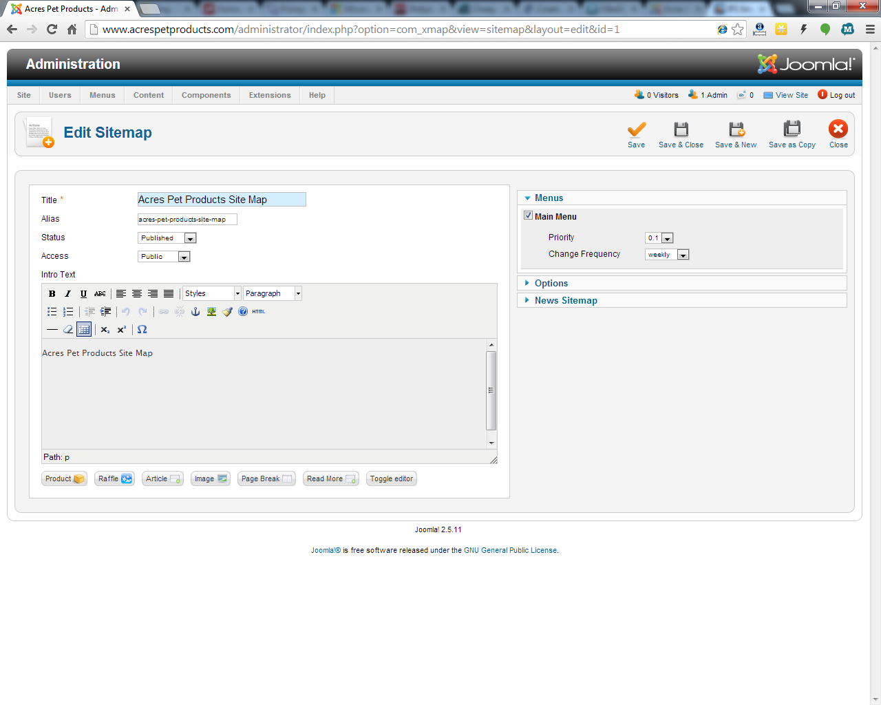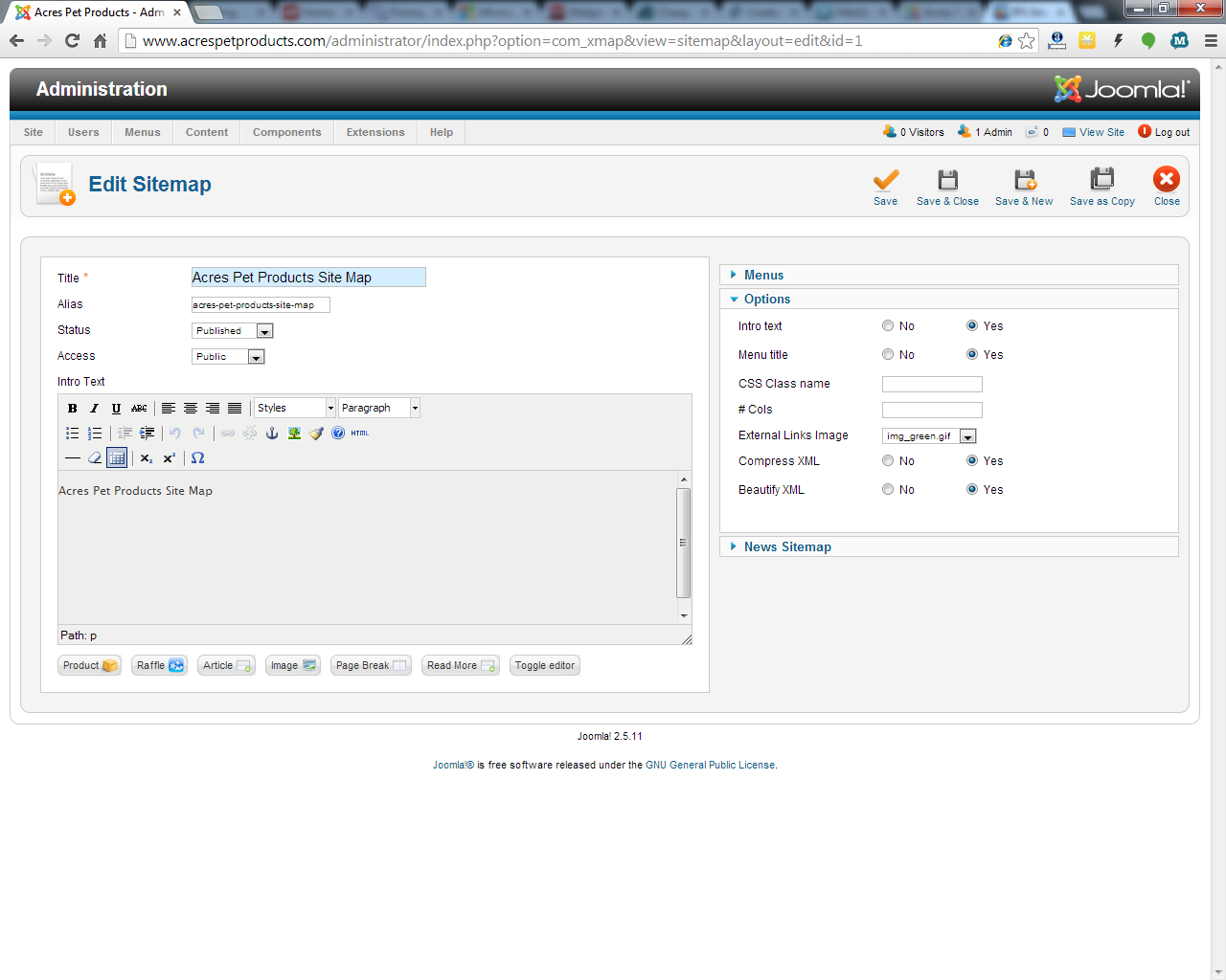 -- url of the page with the problem -- : acrespetproducts.com/index.php?option=com_xmap&view=xml&id=1