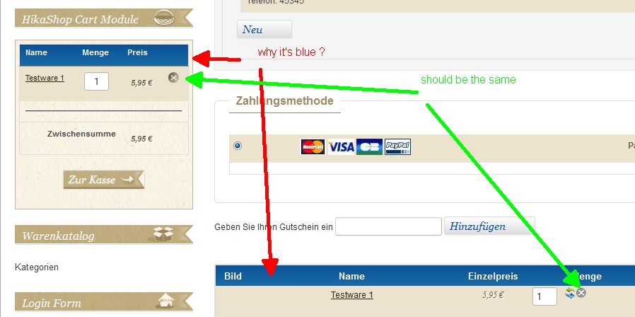 Regarding the products listing in the cart, I don't see the blue header background on your website like you had in a previous screenshot.