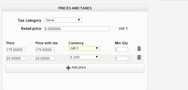 So i want to put the price label in to Rs.175/ $20. and it changes a per product price.