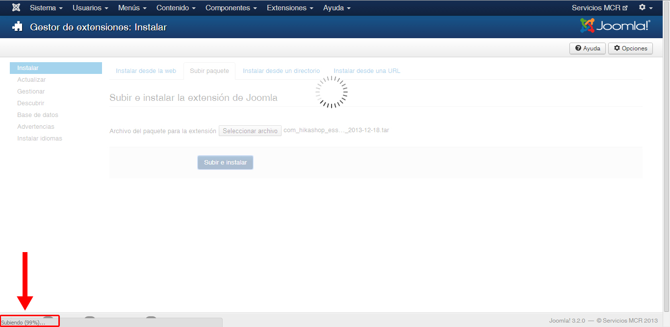 I have a problem trying to upgrade the version starter to essential in joomla since extension manager, just can see the upload in the server at 100% but don't appears any message.