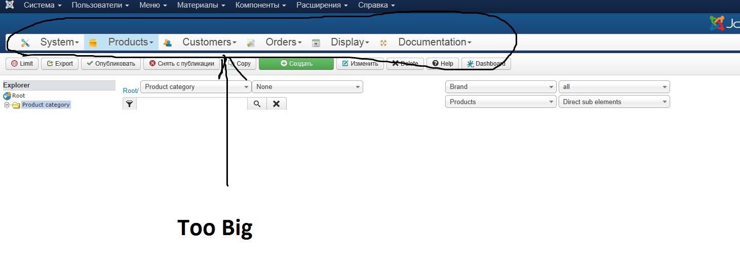 Regarding the HikaShop backend toolbar, that is the normal size of the menu toolbar on Joomla 3.x as it uses the new styling of toolbars on Joomla 3.x