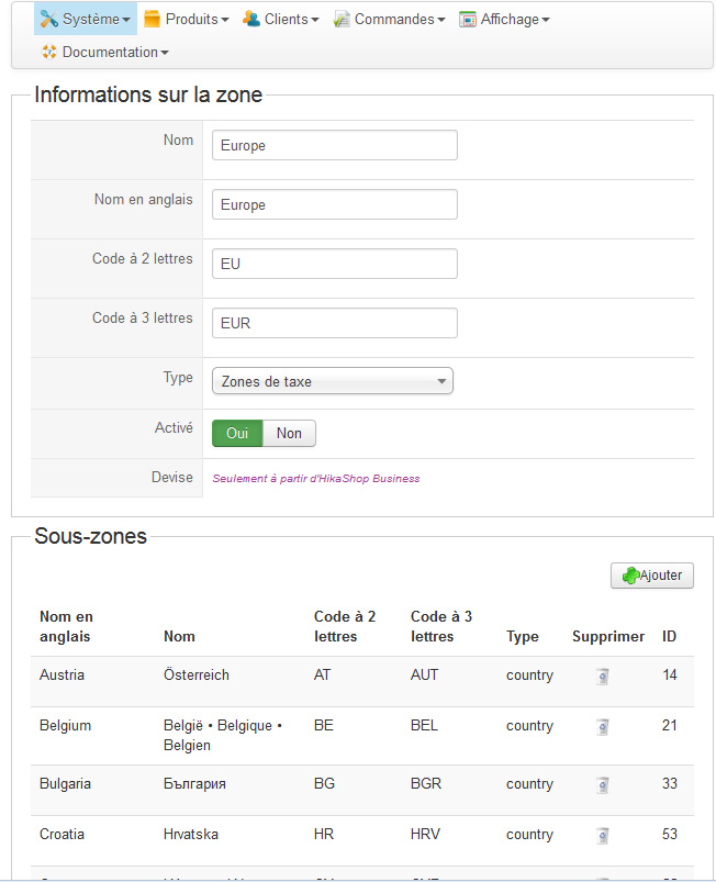 J'ai créer une nouvelle règle de taxe en sélectionnant Europe puis je l'ai activé.