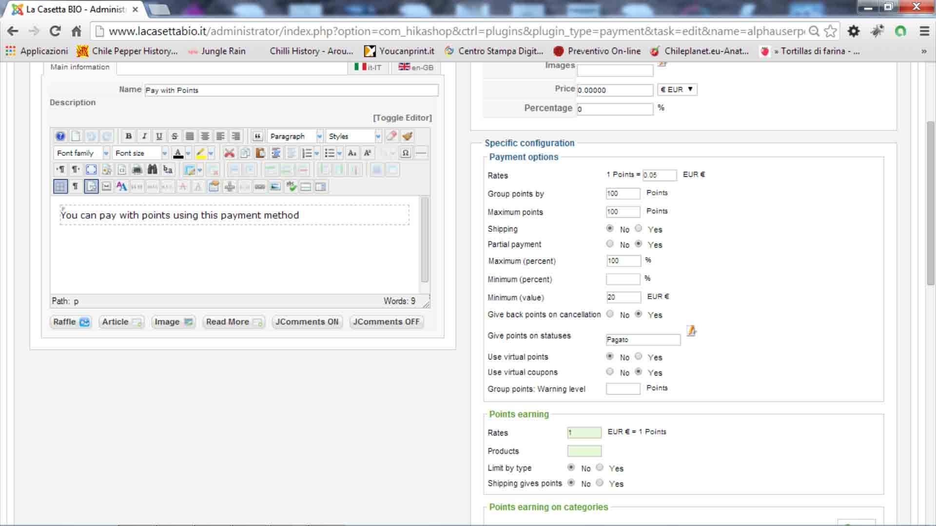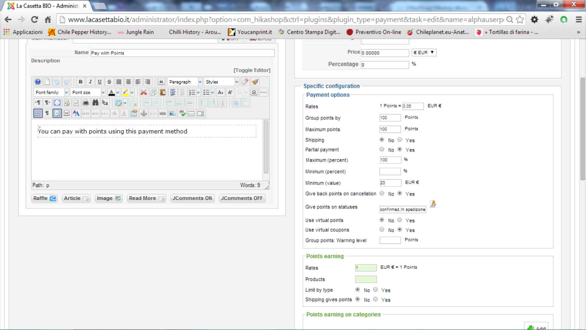 i use the plugin type " Hikashop AlphaUserPoints Plugin" called "Pay with points".