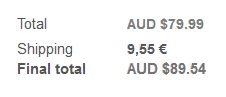Just testing the currency calculator, and at the checkout, the price is in Australian dollars, yet the shipping cost is in euros.