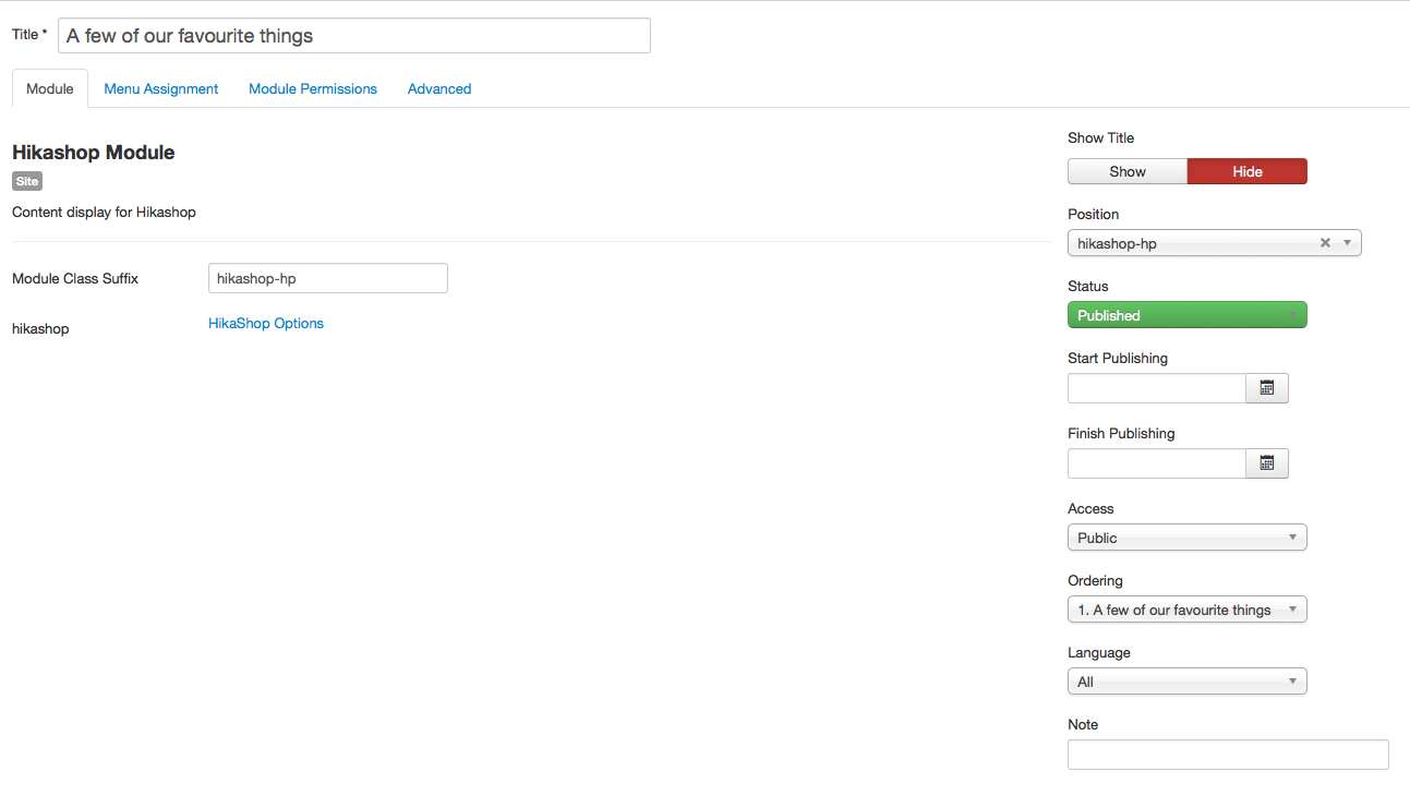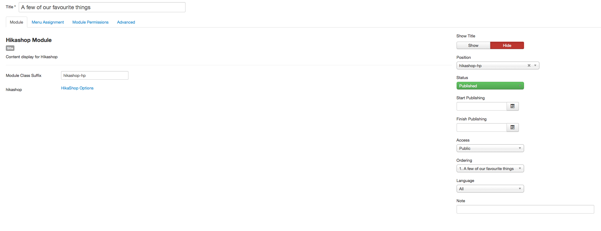 Thanks for a quick reply but I'm afraid I don't follow you, I don't seem to have the display options you described, please have a look at the below screen grabs with the joomla and hikashop settings of my module, any suggestions?