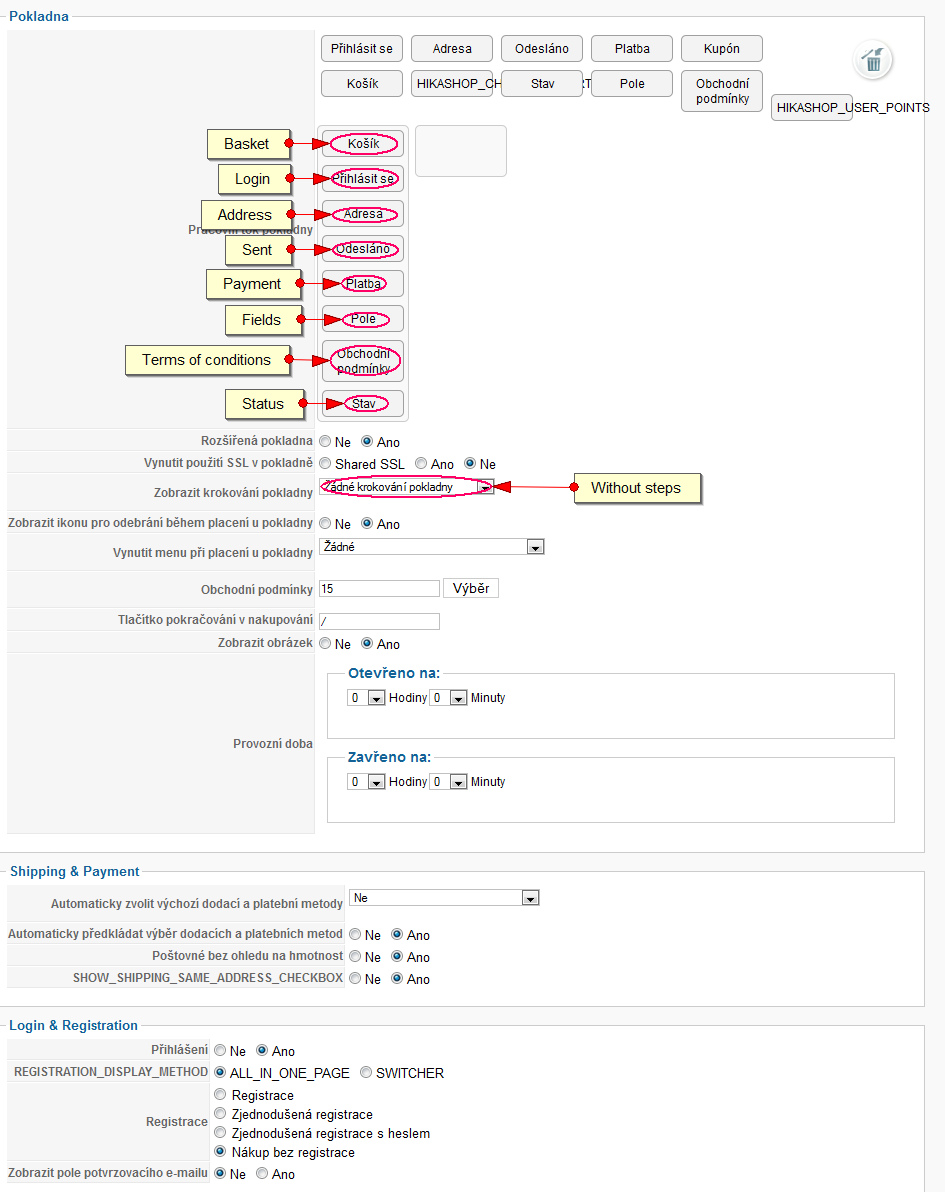 Can you show me what are the different URLs that you are having through the last step of your checkout process, and also some screenshots of how you configured your "checkout workflow" through "Hikashop->System->Configuration->Checkout" ?
