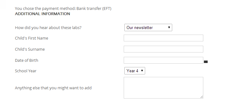 The dropdown fields, "How did you hear about these labs?" and "School Year" default to the first option.