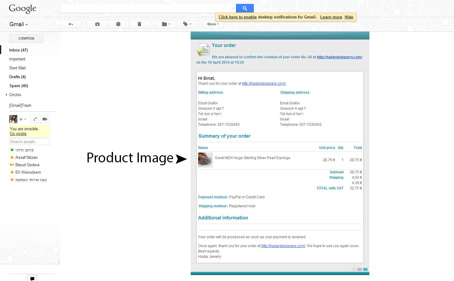 How do I edit the Email so that the products images will also appear at the admin Email? Please give me a well explained answer since I'm kind of new with Joomla and Hikashop