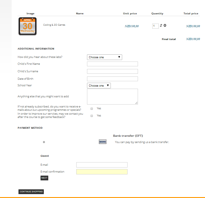 Once the checkout process has begun, I don't want the "Continue Shopping" button to appear at the bottom of the page, (as appears in the image below i.e. under the "Next" button.