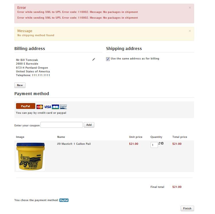 -- Error-message(debug-mod must be tuned on) -- : Error while sending XML to UPS. Error code: 110002. Message: No packages in shipment
