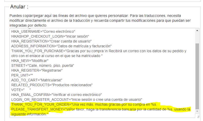 I need change two strings of the language file, but it is not running. The earlier changes were ok, but the last two strings not.