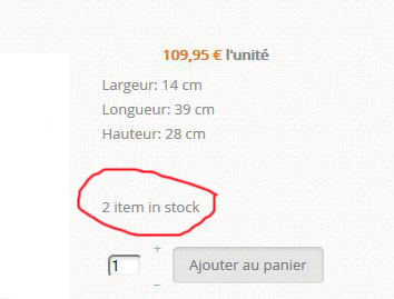 As you can see there is still the translation key "X_ITEMS_IN_STOCK" but we added "X_ITEM_IN_STOCK" in order to manage the singular and plural based on the product quantity.