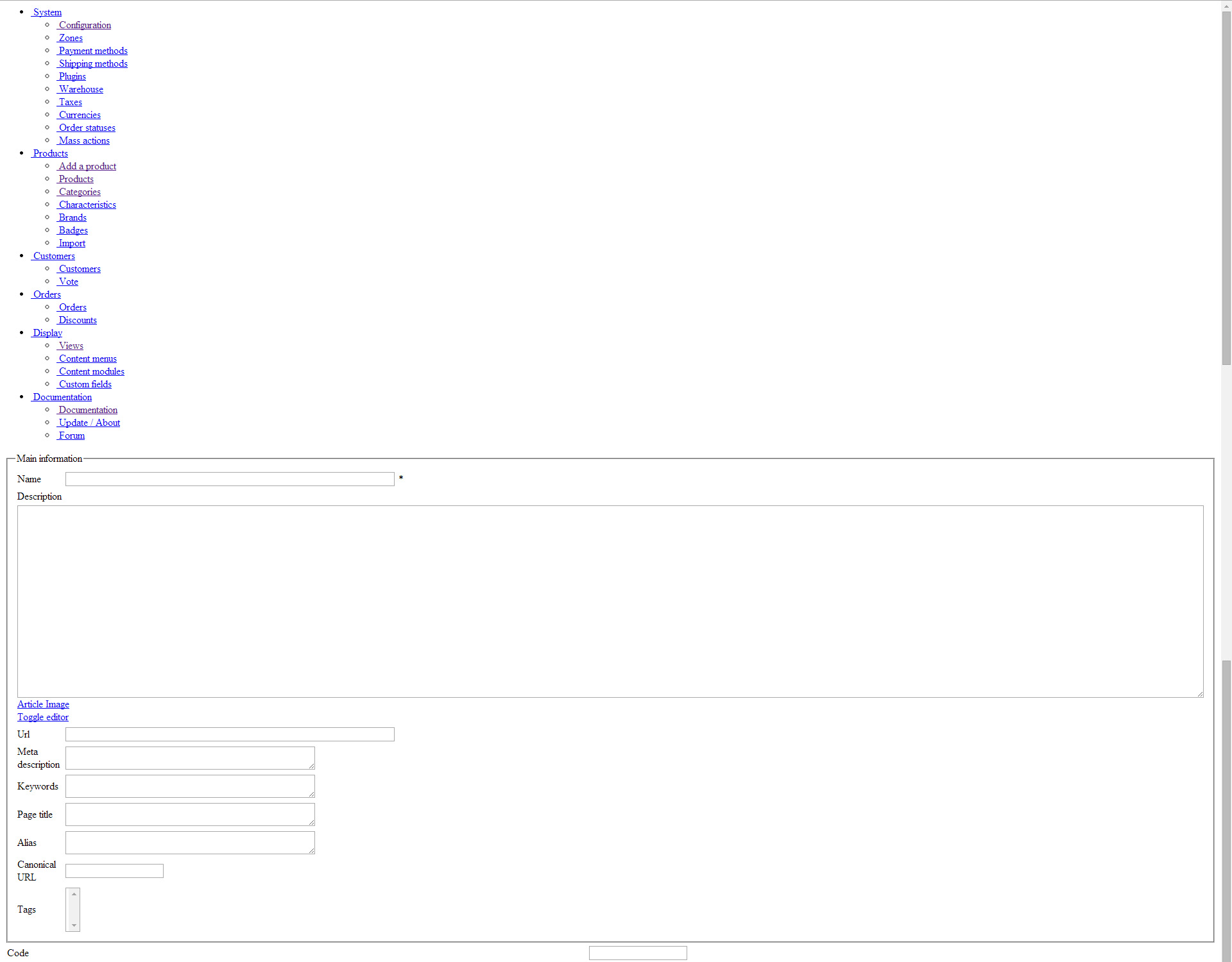 Add Product page not displaying correctly