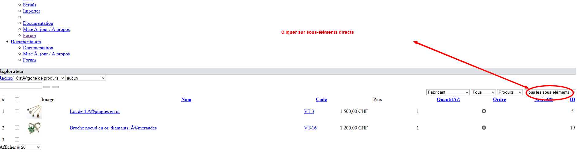 J'ai pour le moment contourner le problème pour pouvoir traiter un peu des données en cliquant sur : Tous les sous-éléments et choisir dans le menu déroulant : Sous-éléments directs.