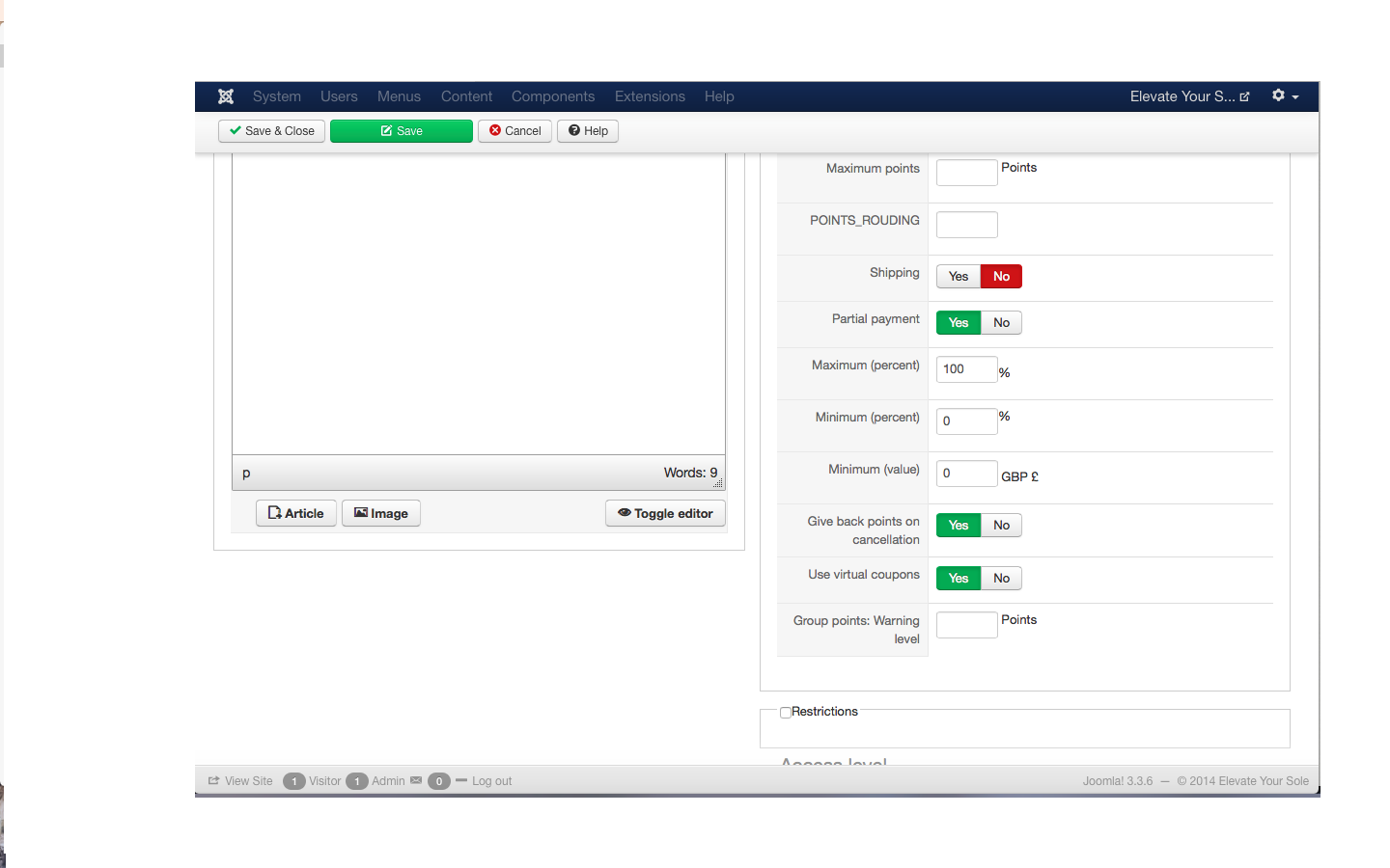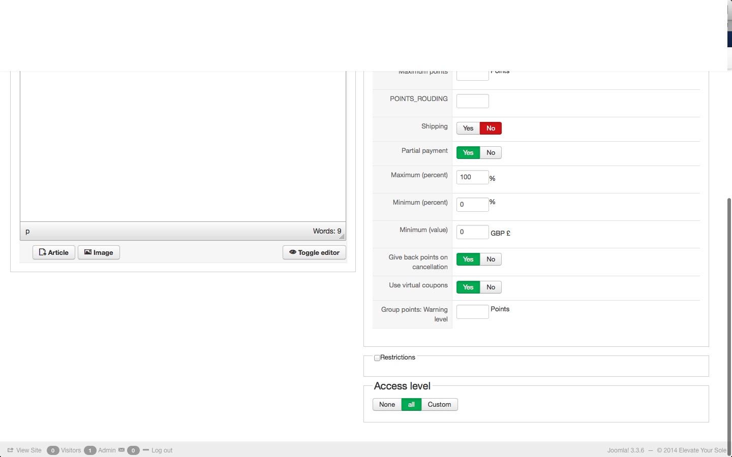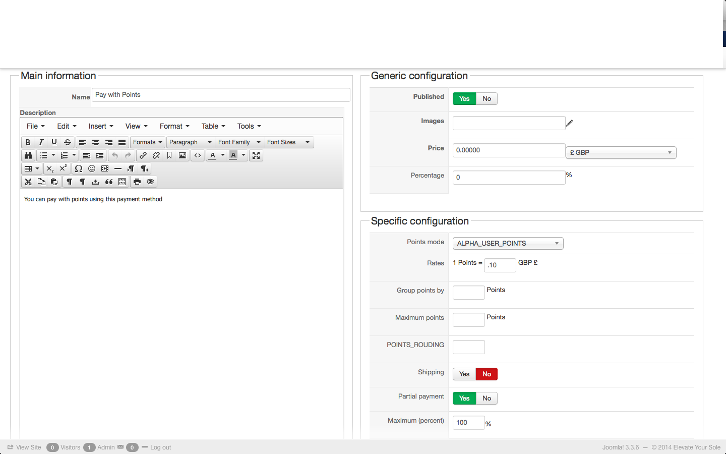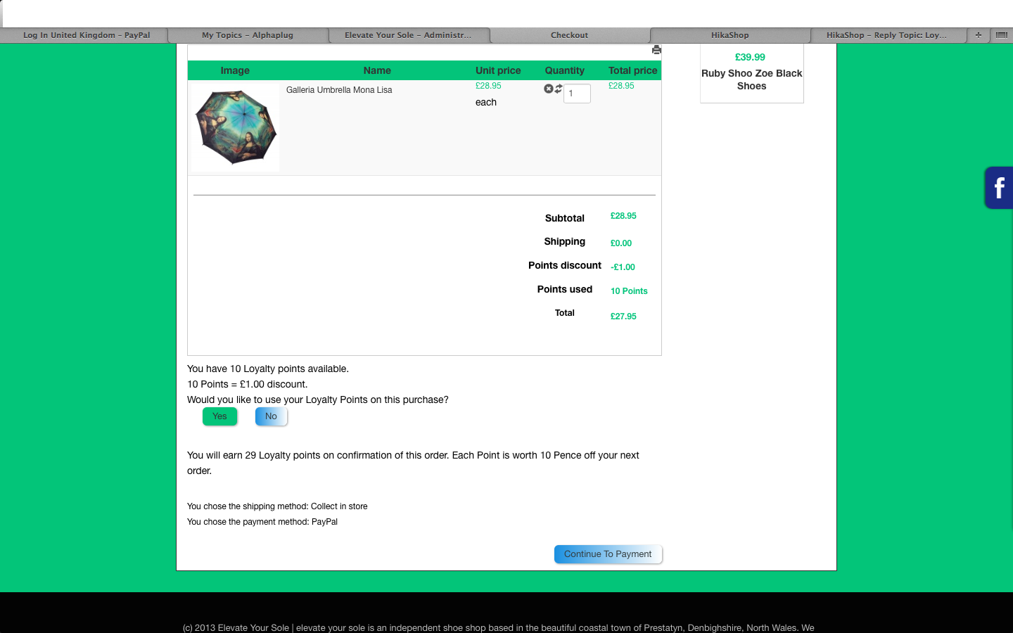 1) The 'final amount' isn't being pushed through to Paypal, which is my only payment method. Hikashop deletes the points from the users alpha points account, but doesn't show the discount at the Paypal end...