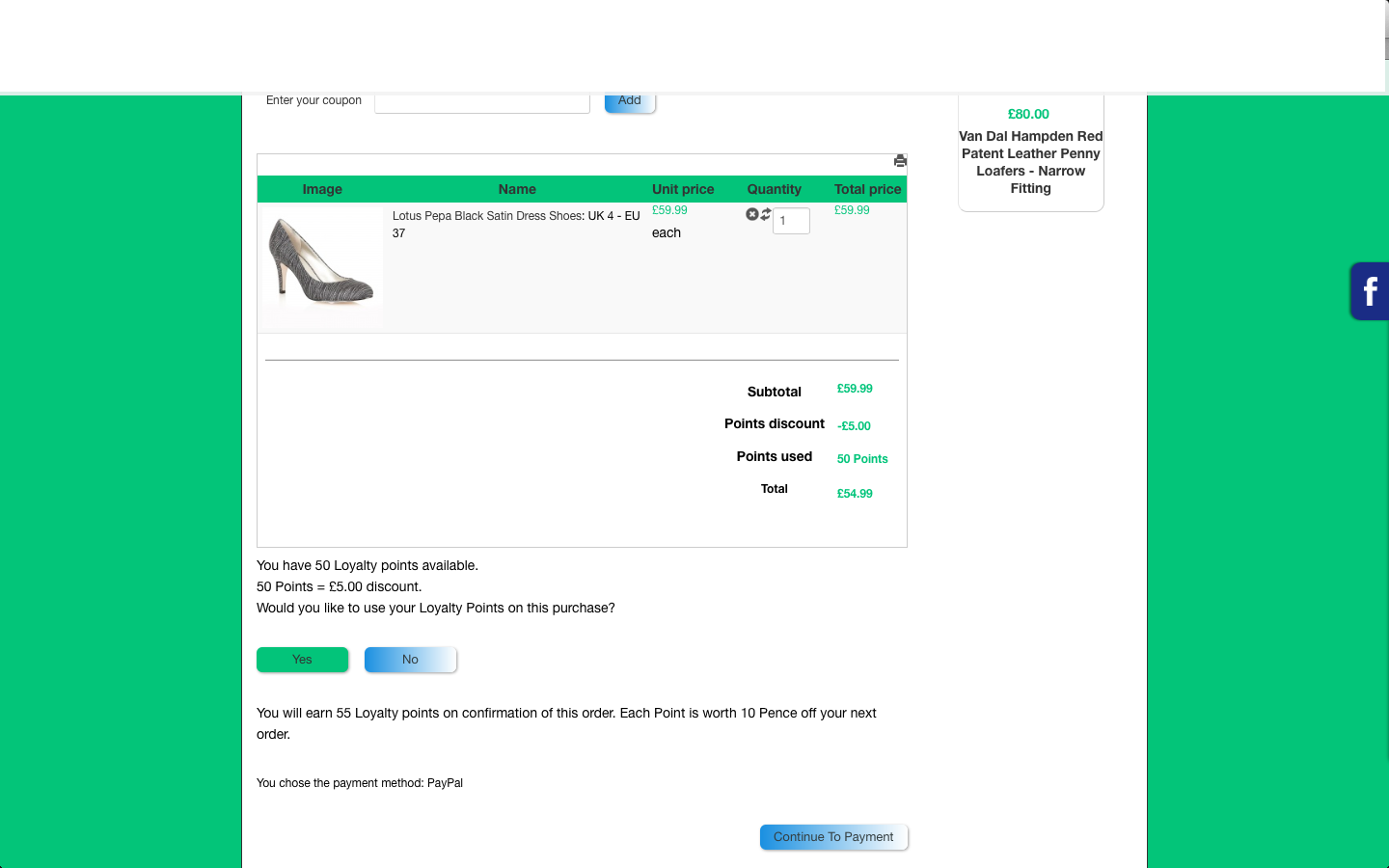 I've had a customer that has just used 50 points giving a discount of £5 on the order