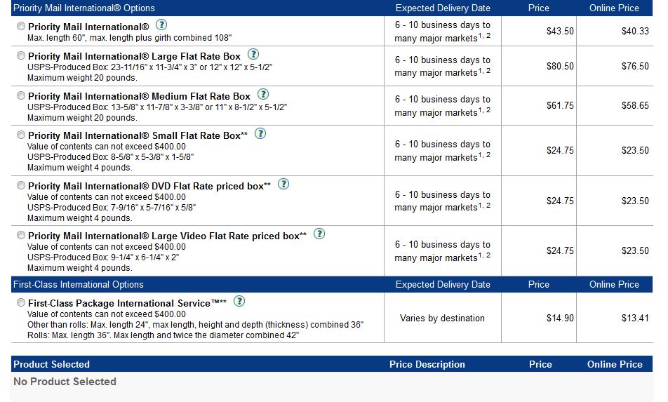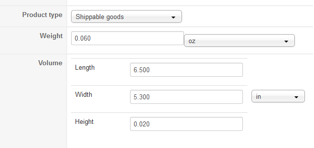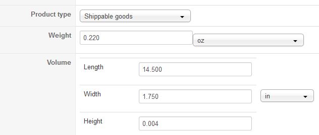 For my product 14.5x1.75x0.004 in ; with 4 products in the cart I got