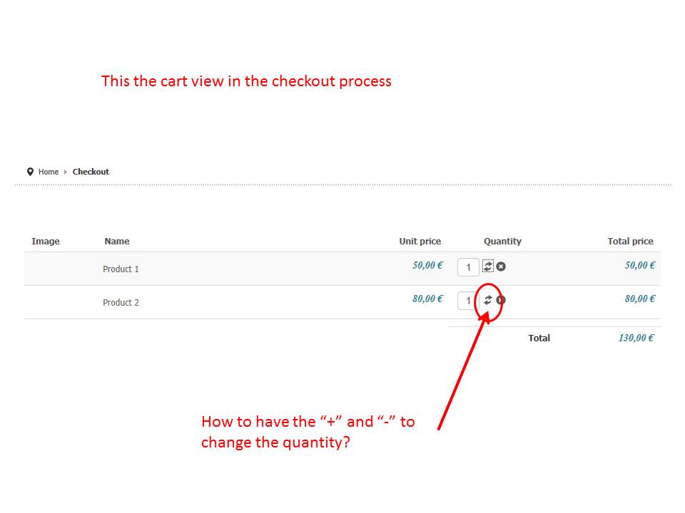 Now the columns have the same ordering, there is unit price and total price present, the quantity can be updated by clicking on a refresh button just next to the quantity field and a delete button is present.