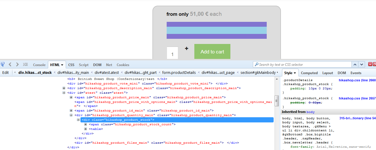 I believe this will then move the button and quantity + - buttons as well as the box up to the position where I want them.