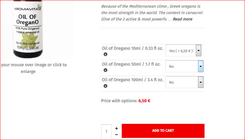 Then, you set the "characteristics display method" option of the configuration to "list" and the "Display the quantity field on the product page" option "global on listings".