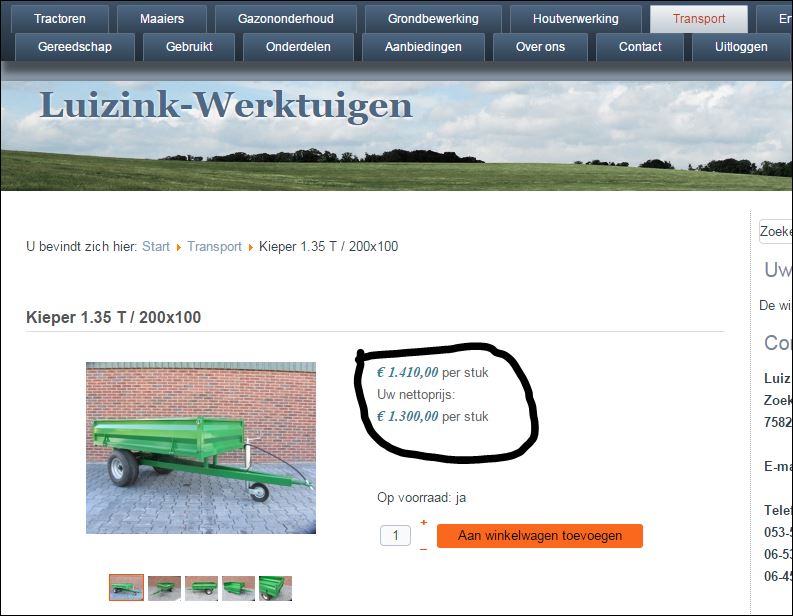The override was created only for the text before the Nett Price 'Uw nettoprijs: '