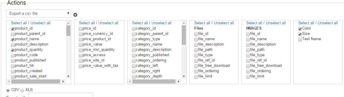Via the menu System > Mass action, you can create a new mass action and set it up as desired to export only desired data.