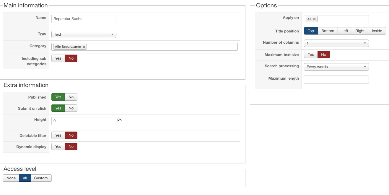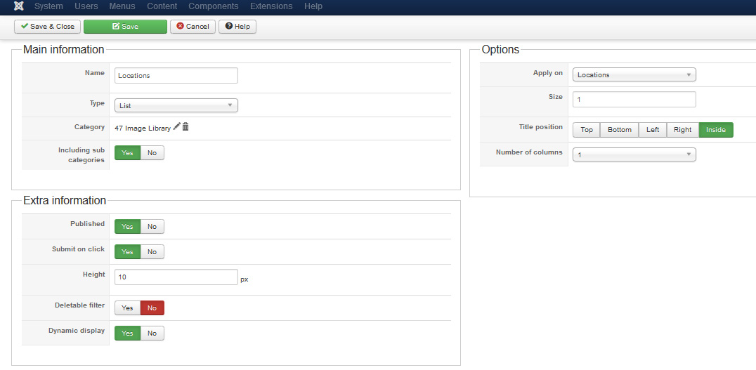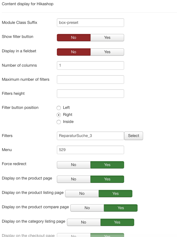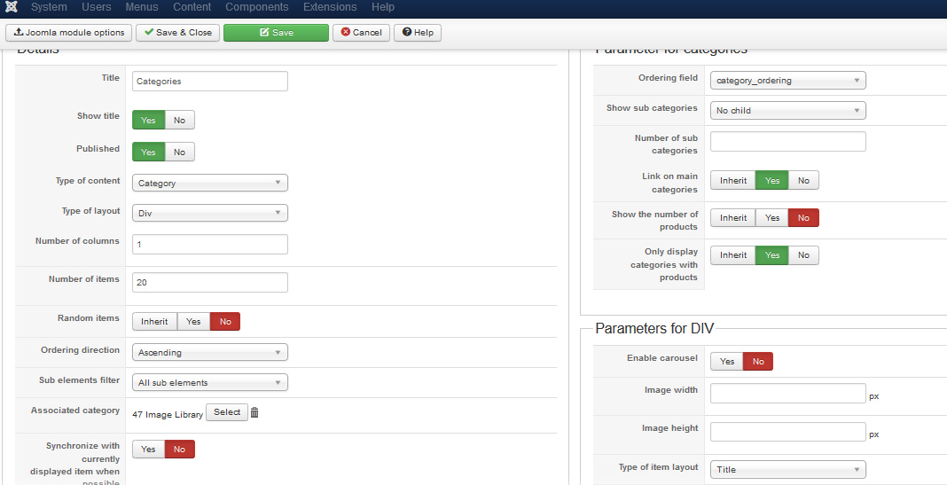 You have such module displayed under the category listing menu ; but you do not provide his configuration (which is available just below the category listing menu configuration page).