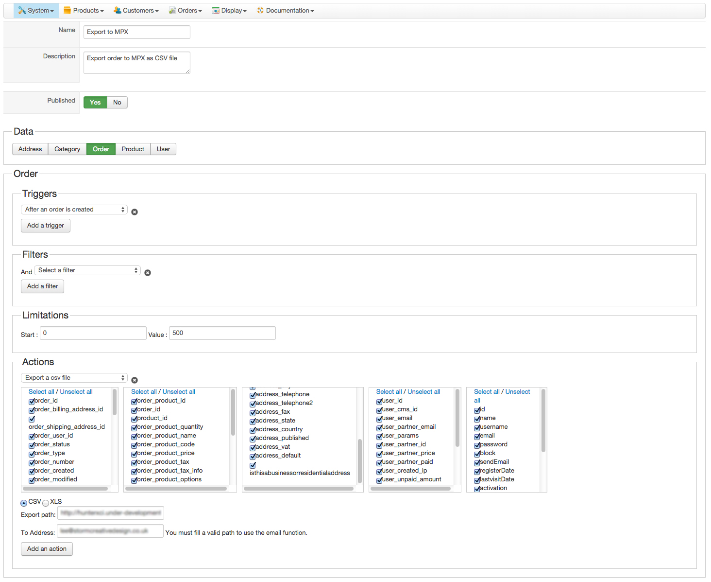 However I have setup a mass action to save a CSV file and email a copy but it does not appear to run when an order is created. Attached is a screenshot of my setup. Can you please review and tell me how I can get this to process everytime an order is placed.