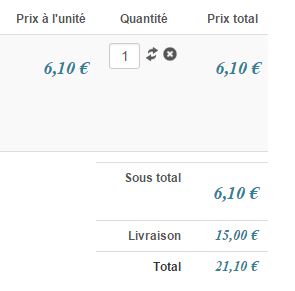 Pour la seconde question, voici ce que j'ai dans le panier, les prix sont affiché en HT
