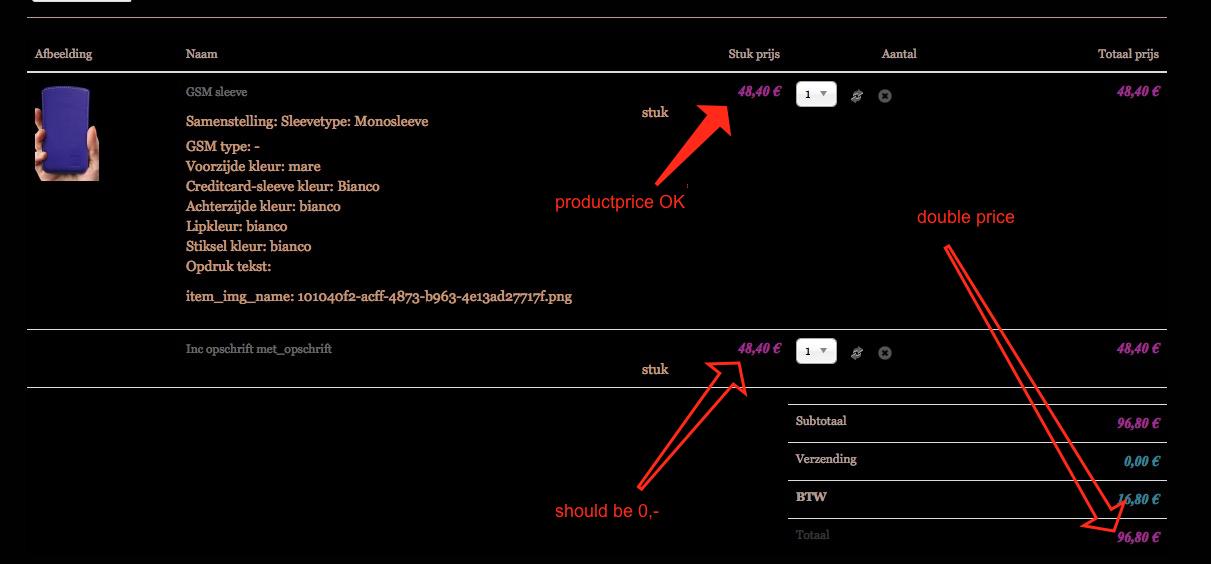 Now if I ad a product "without text" the total price is updated (added) with the product price resulting in double amount for the product.