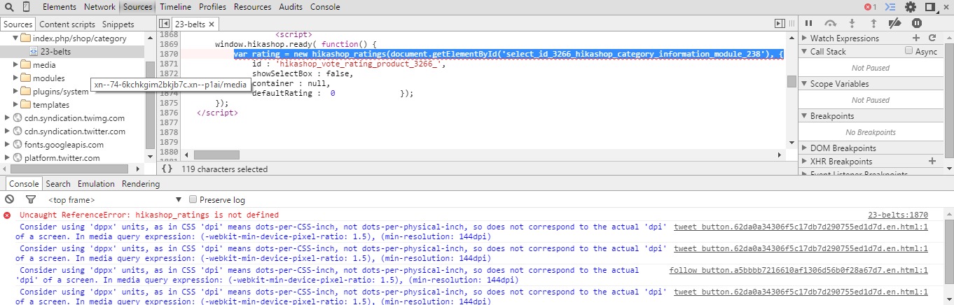-- Error-message(debug-mod must be tuned on) -- : Uncaught ReferenceError: hikashop_ratings is not defined