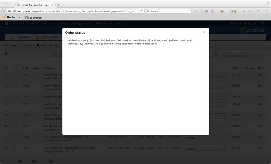 This fix has not worked for us. We replaced the popup.php file and edited the js file. Cleared all browser cache's and joomla cache. Still showing home page when we go to update an order status.