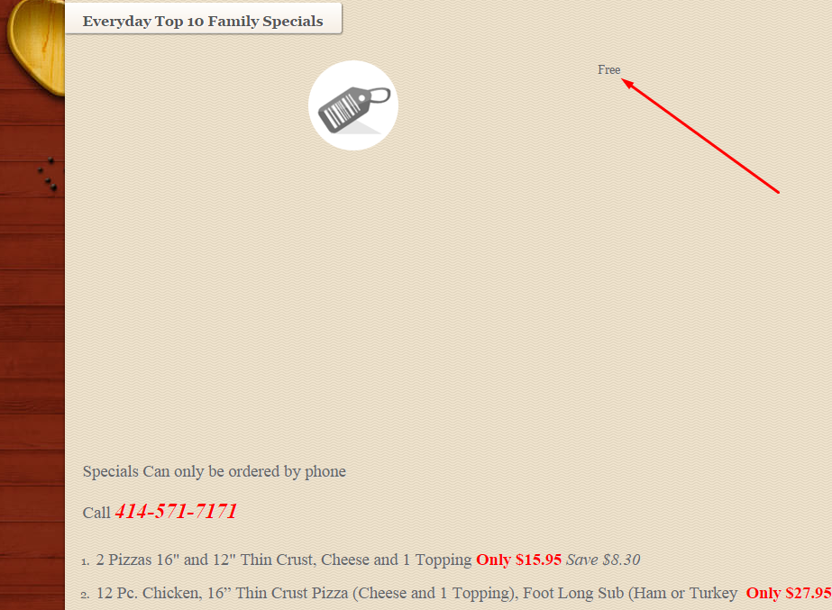 it show is a list of specials, however we don't want customer call and says it says FREE online, so how we can remove this and instead we put by phone only