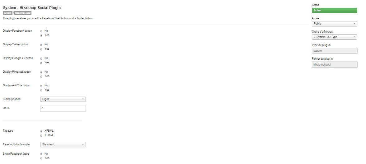 It could be also useful to have more details about the HikaShop social plugin configuration.