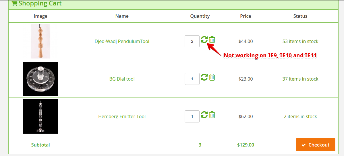 Cart refresh not working in IE