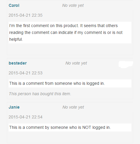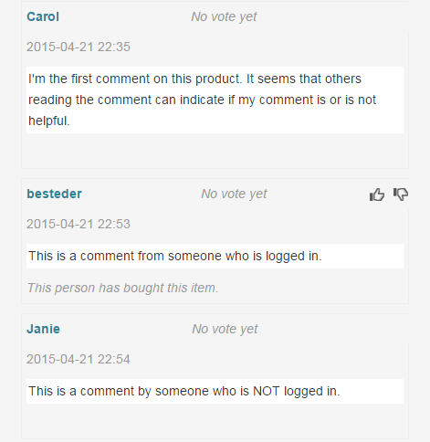 Notice the first and last ones do NOT have those up/down icons to indicate if the comment was helpful or not...only the one that was posted when the user was logged in.