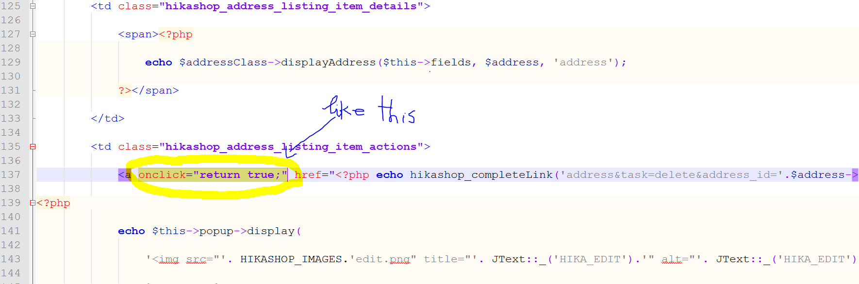 <a onclick="if(!confirm('<?php echo JText::_('HIKASHOP_CONFIRM_DELETE_ADDRESS', true); ?>')){return false;}else{return true;}" ...