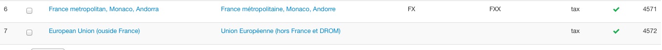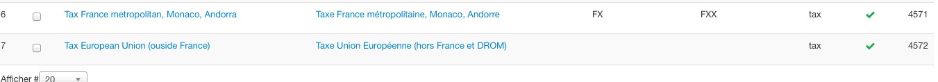 1 zone de taxe active (sur laquelle s'applique la taxe par défaut tva)