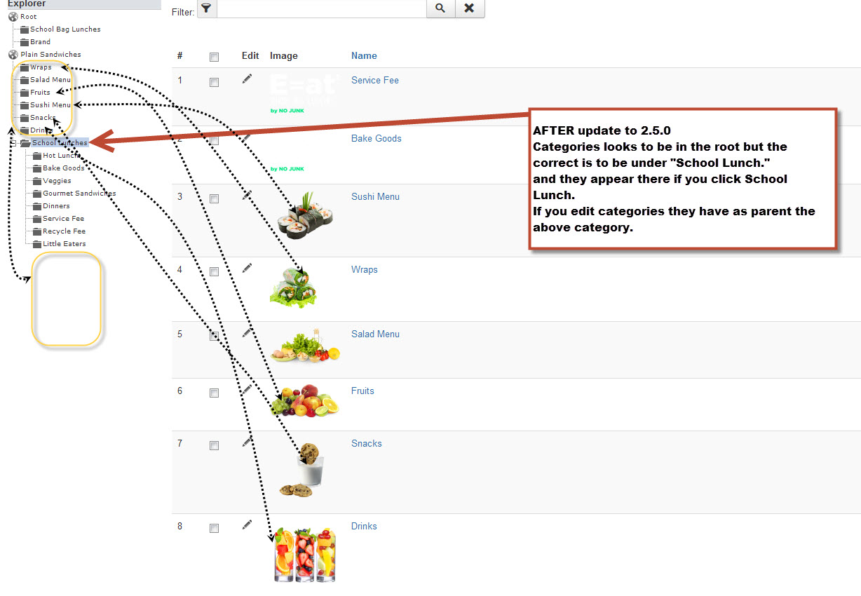 Then, you can click on the "rebuild" button of the Categories listing of HikaShop to fix the tree structure and you'll be able to see these categories in the left explorer.