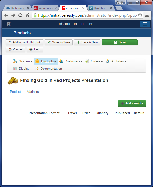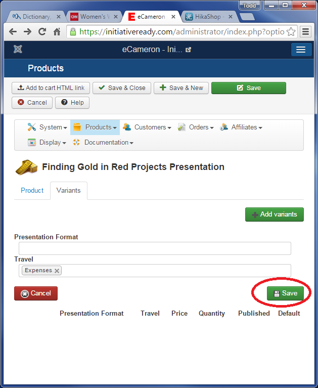 Here are two screen\shots. One as I select the variant, the other right after clicking the save save I circled.