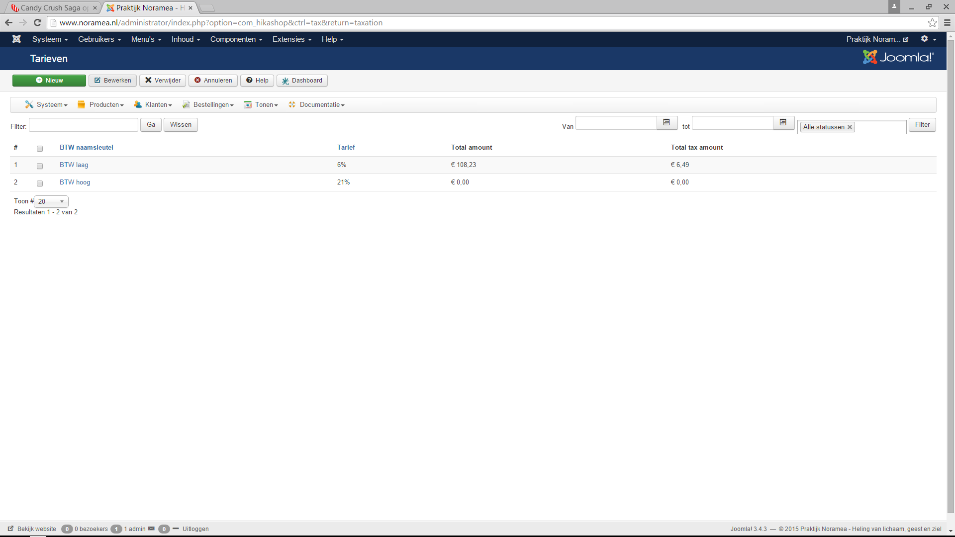 In "Manage Tax rates", the first one shows the 'total amout' and the 'total tax amount' correctly.
