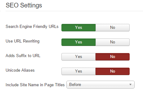 The only SEO that I know I am using is the system settings: