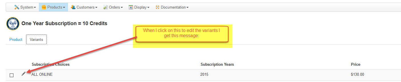 Can not edit Variants