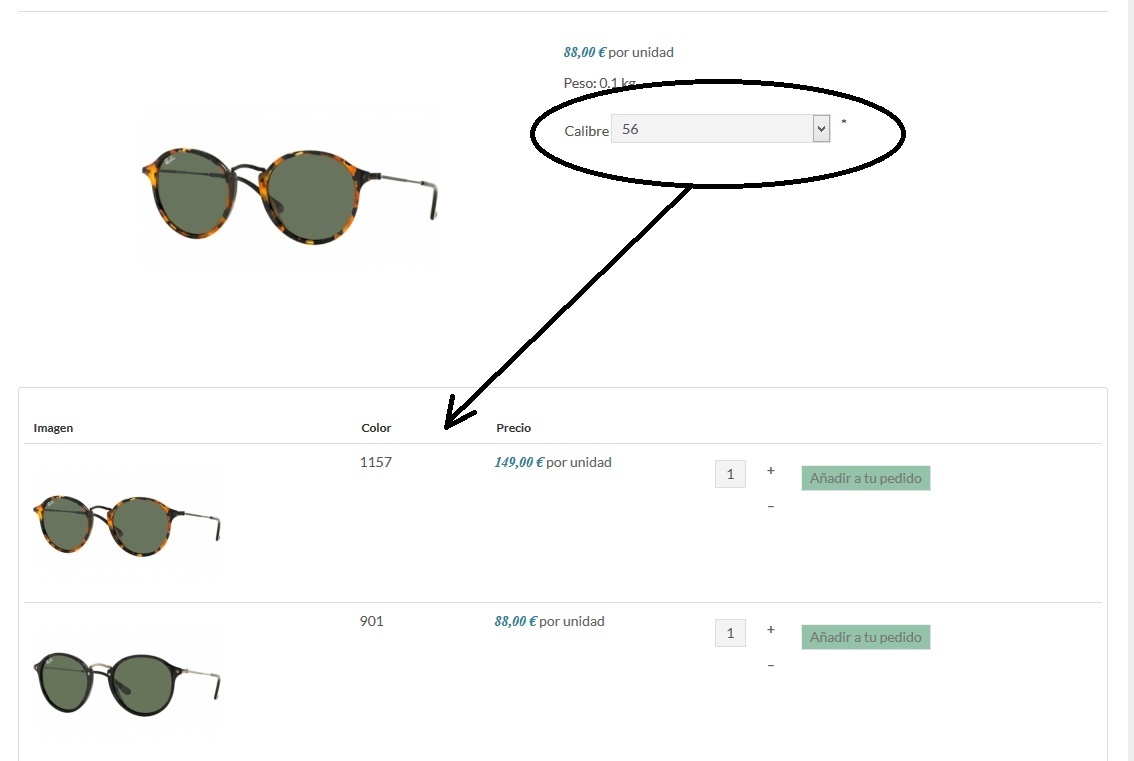 If a color has 3 sizes I have to create one for each size and the list can be enormous.
