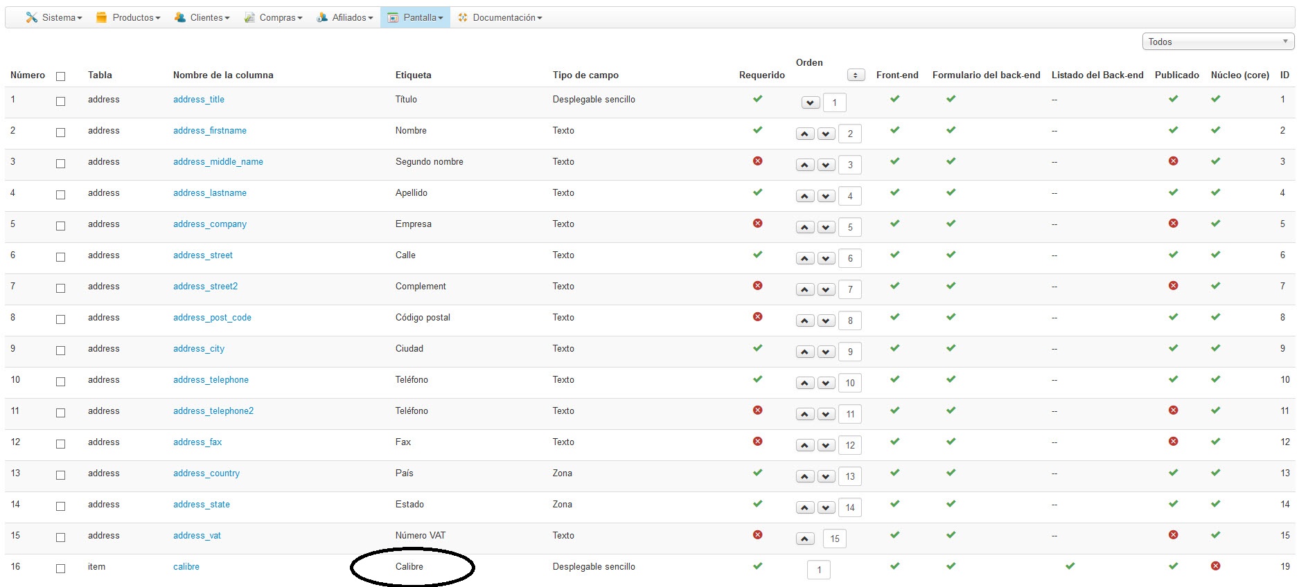 Hi, I created a custom field " Calibre " and I get to select it. But then when you pay does not leave the selected gauge "Calibre".