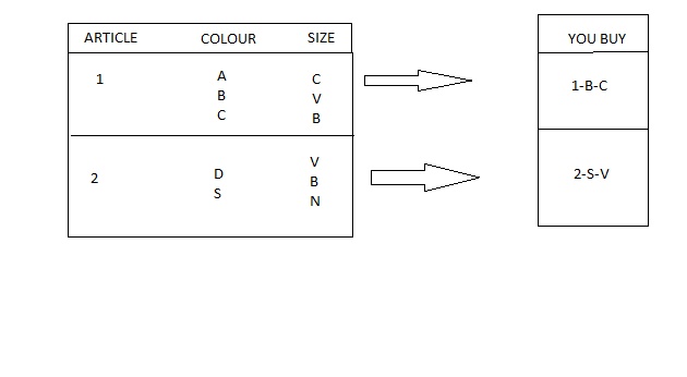 1 article have most colour and 1 colour have 1 or 2 or 3 sizes...but dont all colours have same sizes...