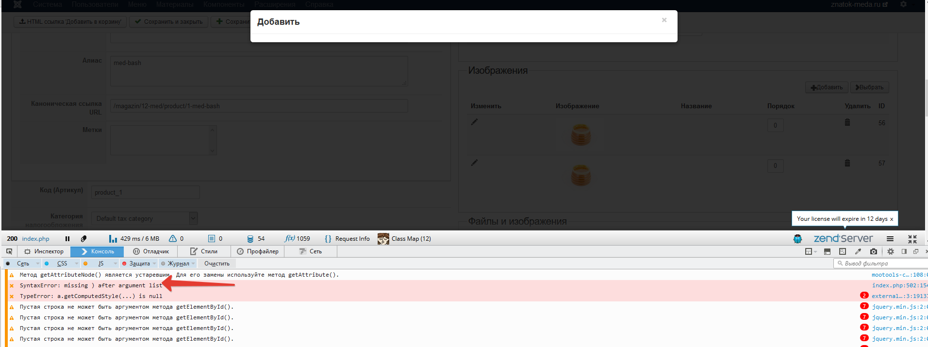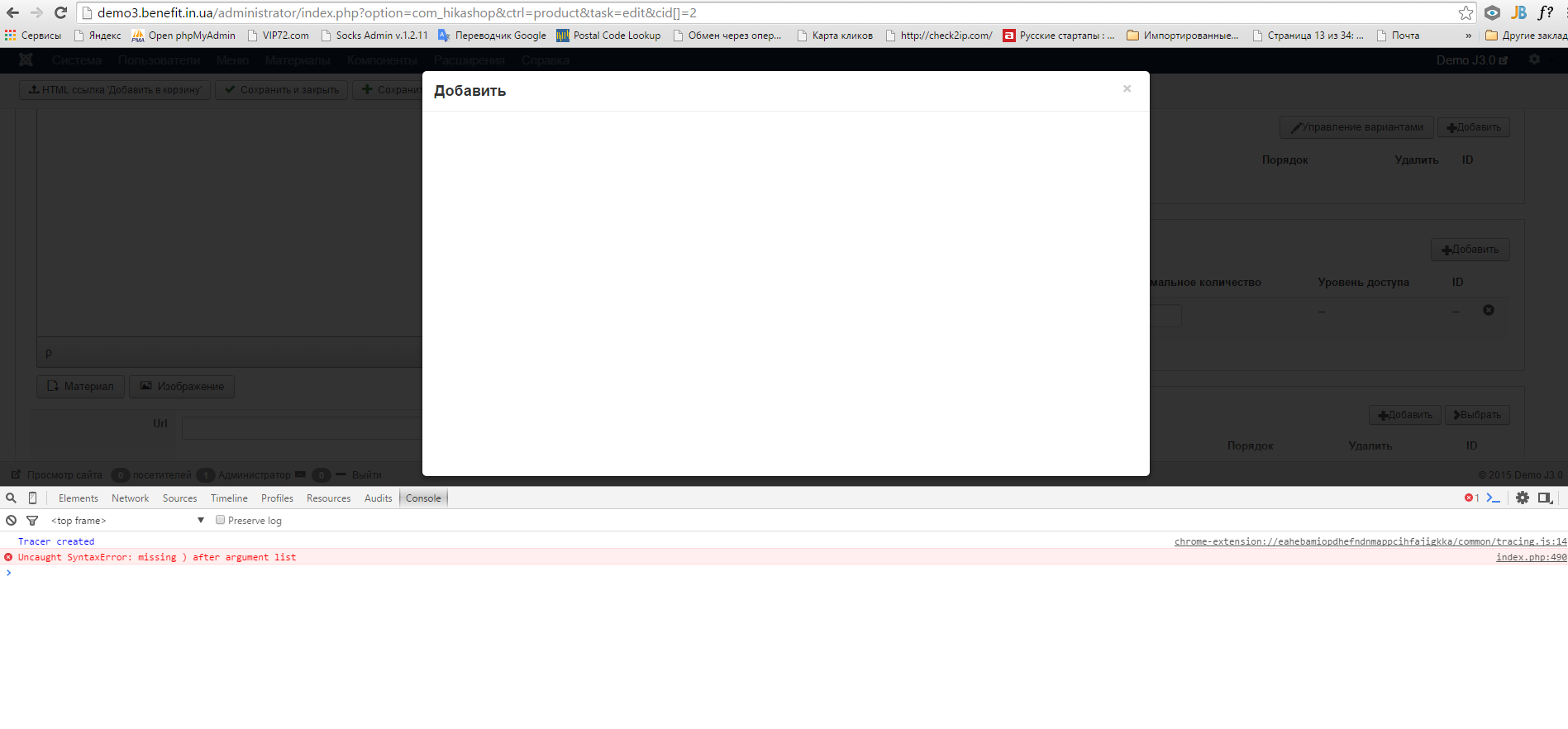 array('name' => 'popup','icon'=>'upload','alt'=>JText::_('ADD_TO_CART_HTML_CODE', true),'url'=>$url),It should activate the "jsSafe" from the Joomla Text, and avoid the javascript issue.