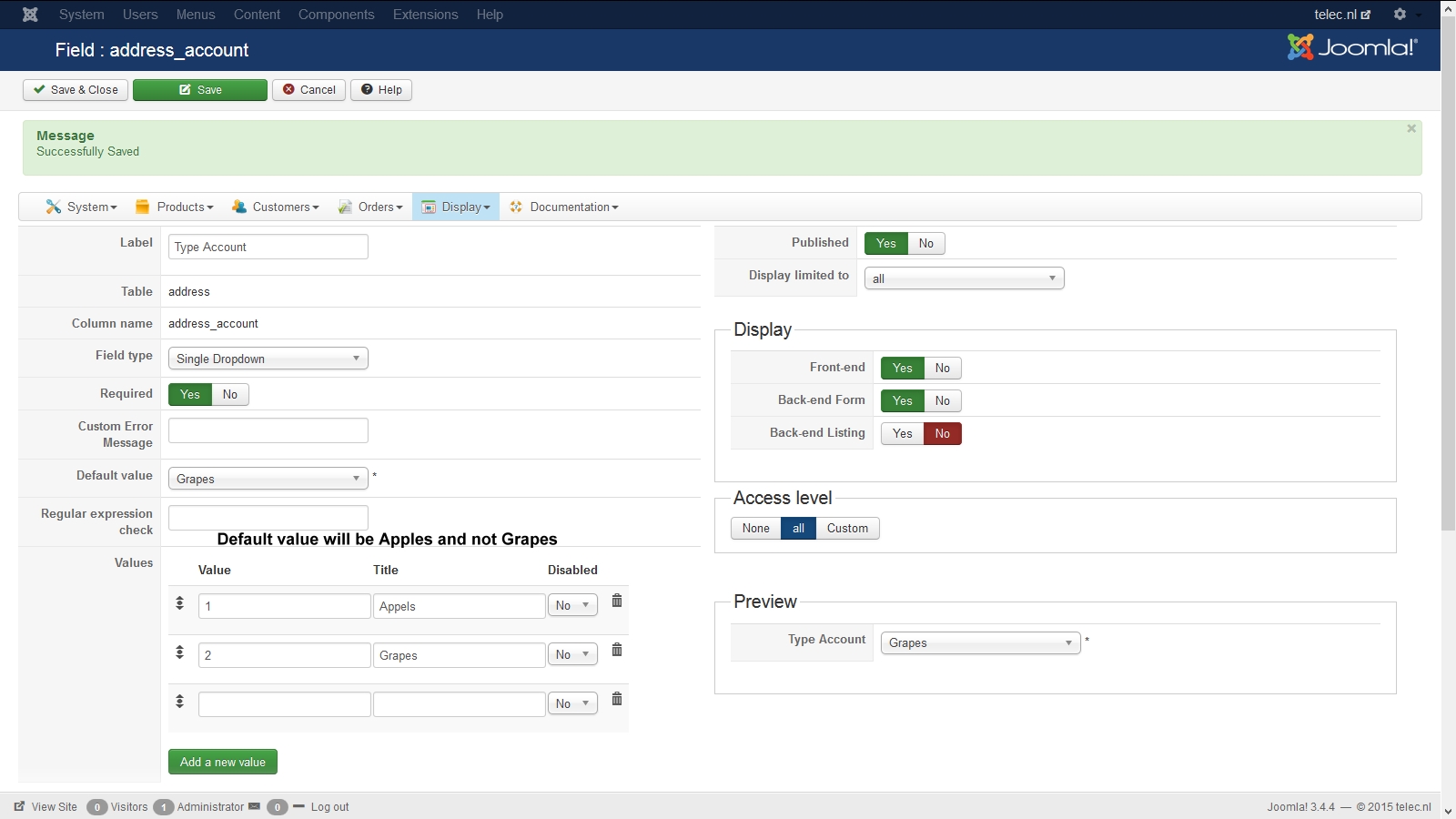 On the registration page both values are loaded and on the order page only the set default values are loaded.