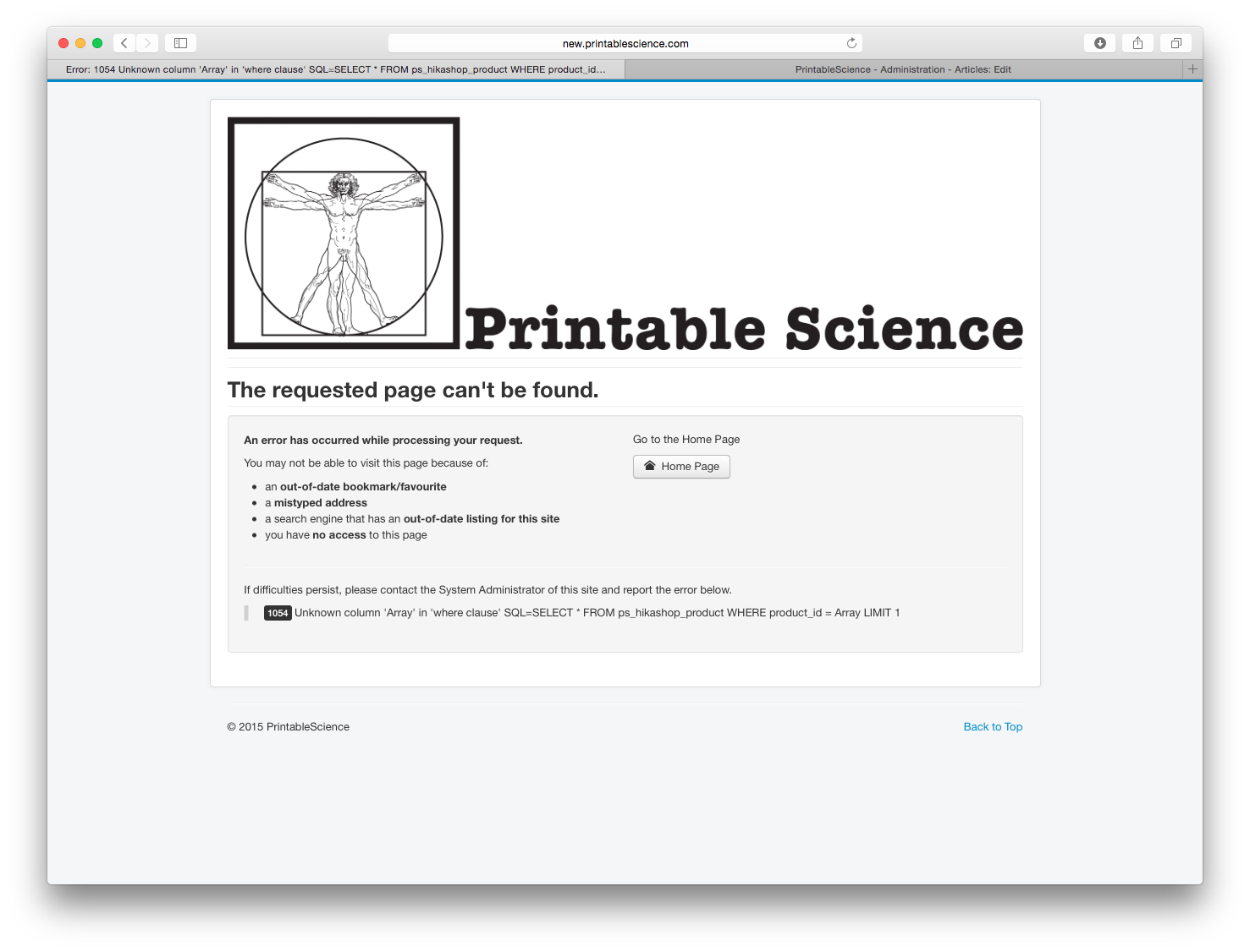 -- Error-message(debug-mod must be tuned on) -- : 1054 Unknown column 'Array' in 'where clause' SQL=SELECT * FROM ps_hikashop_product WHERE product_id = Array LIMIT 1