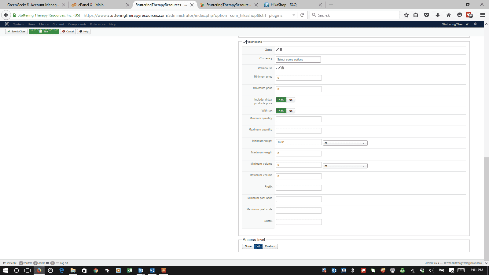 I will be out of the country as of tonight for a week, and I cannot leave the site non-functioning any longer. So, if i can't get it working tonight, I will set it back to Hikashop 2.5 so I can at least receive orders, then I will pick this up again when I get back.